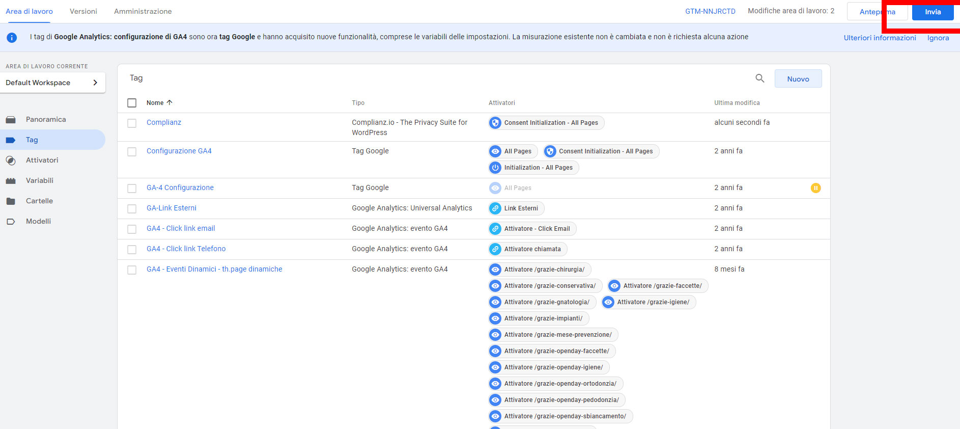Congratulazioni, il Consent Mode v2 è stato installato con successo, non ti resta che inviare come di consueto il contenitore e il gioco è fatto!