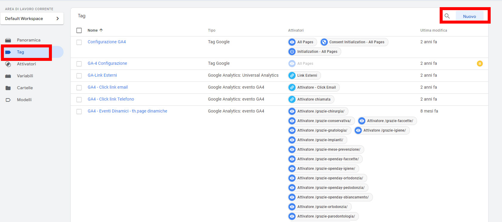 Continuare come di consueto la procedura e passare su Google Tag Manager