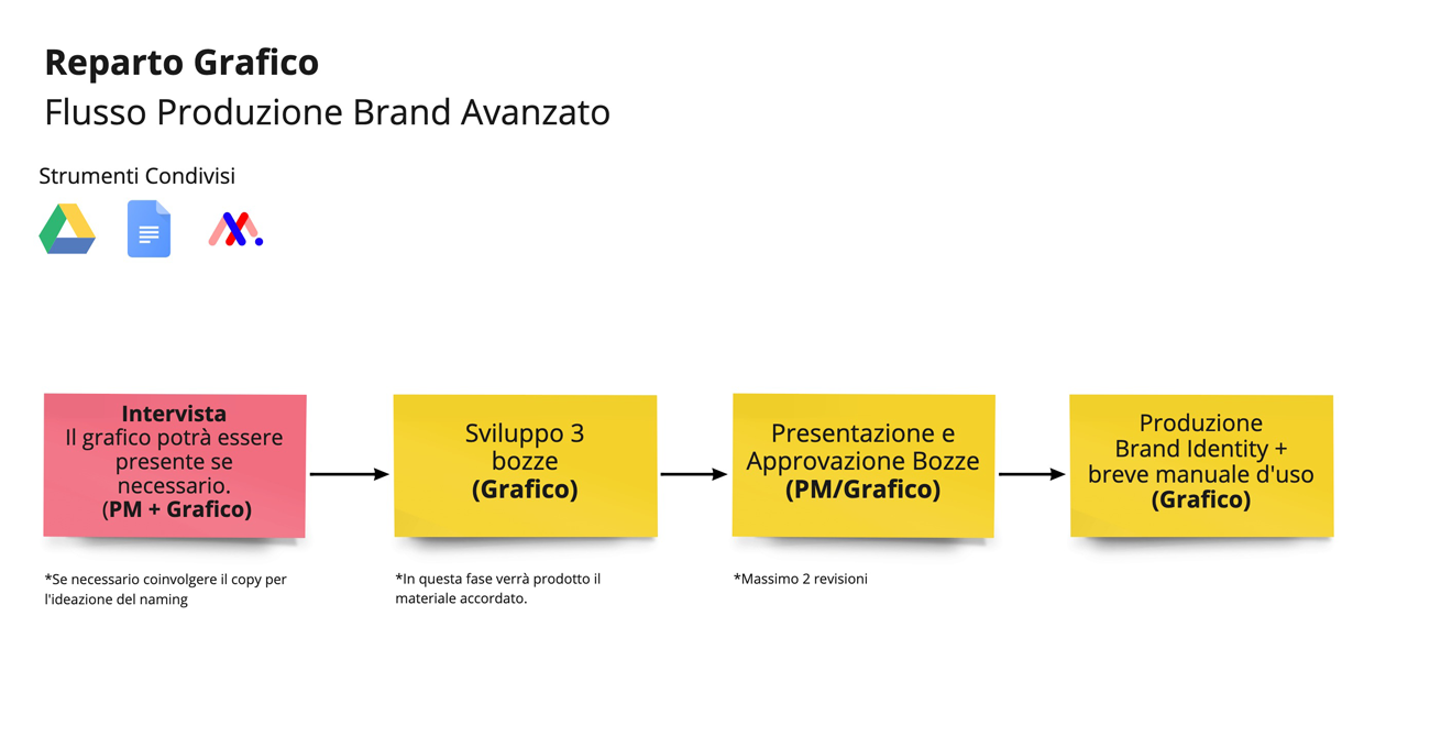 In questo articolo è indicato il flusso di produzione Avanzato per un progetto di brand identity.